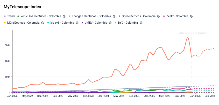 El crecimiento y explosión en la demanda de autos eléctricos en Colombia se está viendo reflejado meses antes en las búsquedas.